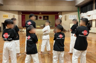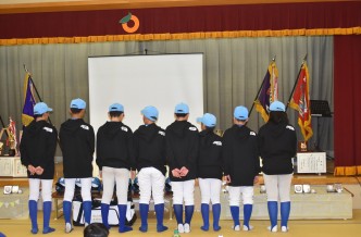 先日のオリジナルパーカーを卒部式で贈呈した際の着用写真です。