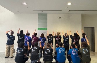 「アジア」に関連する研修会。いろいろ国の方たちが、オリジナルTシャツをお揃いで着ているこの写真!