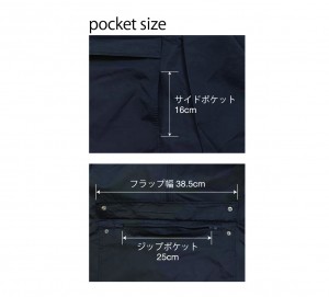 • ジップ開閉式フロントポケット(フラップ内側にスナップボタン x 2)